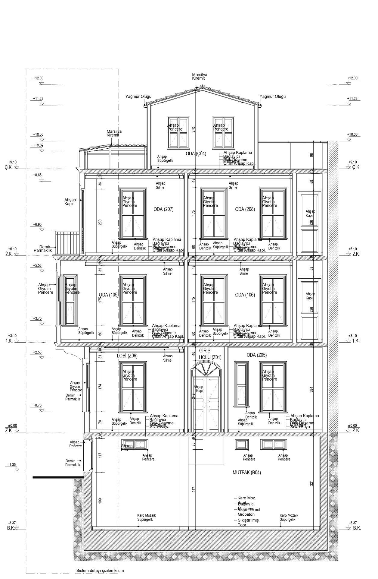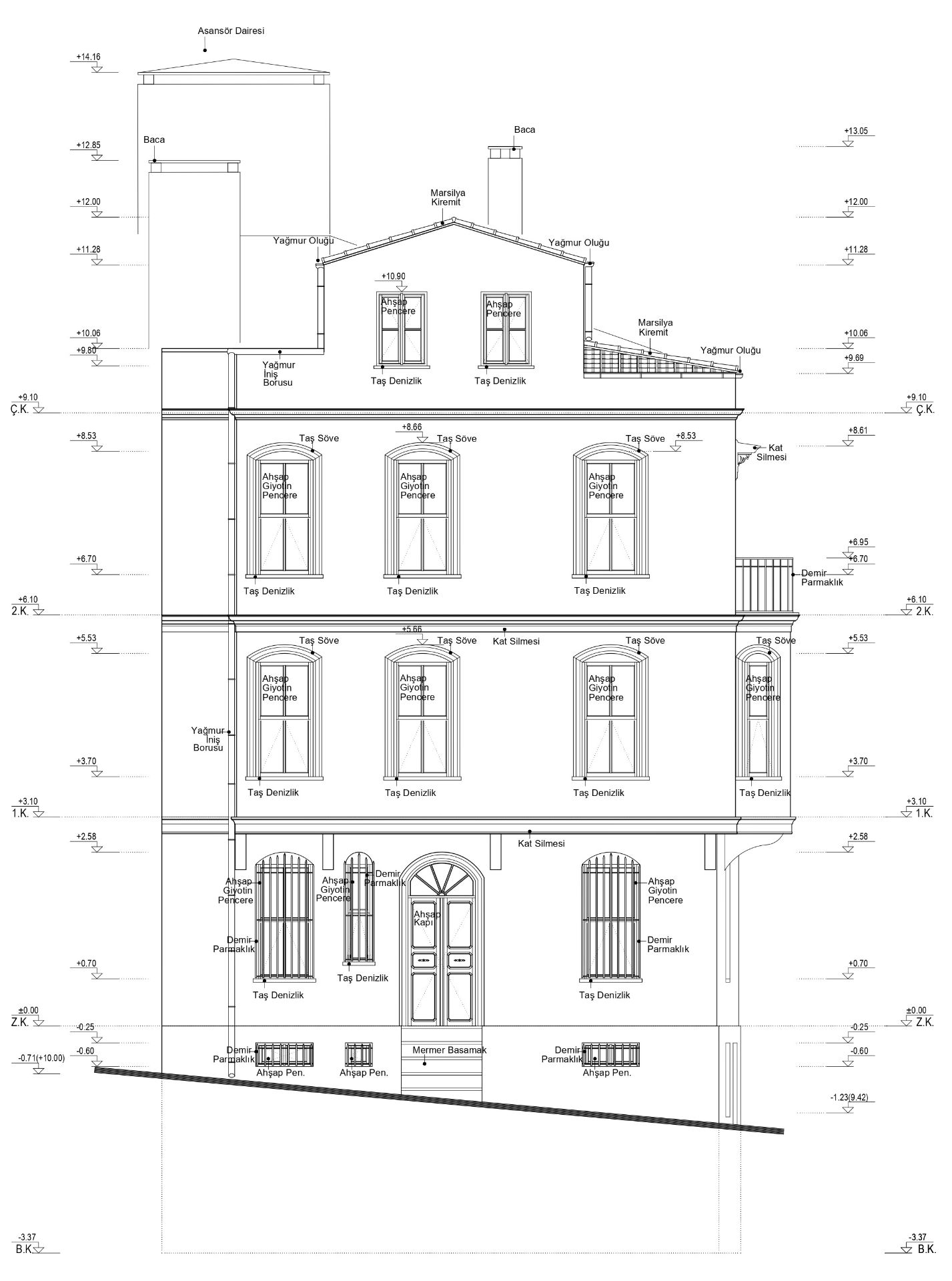 Beyoğlu’nda yer alan tarihi kagir yapının otel olarak yeniden işlevlendirilmesi için NTU Mimarlık tarafından kapsamlı bir rölöve, restitüsyon ve restorasyon çalışması yürütülmüştür. Proje kapsamında yapının özgün mimari öğeleri korunmuş, bozulmuş kısımlar aslına uygun şekilde onarılmış ve modern kullanım ihtiyaçlarına cevap verecek düzenlemeler yapılmıştır.
