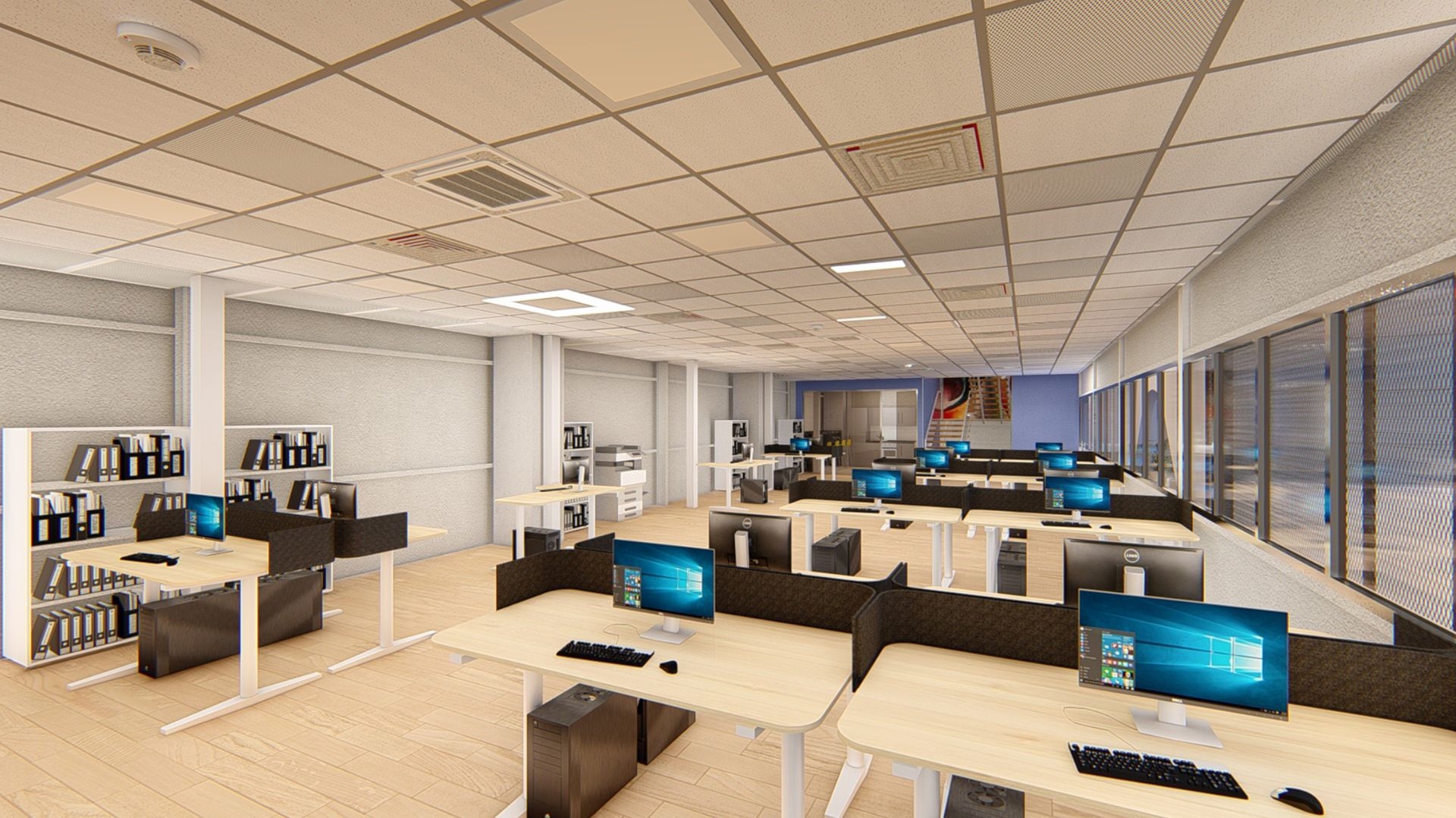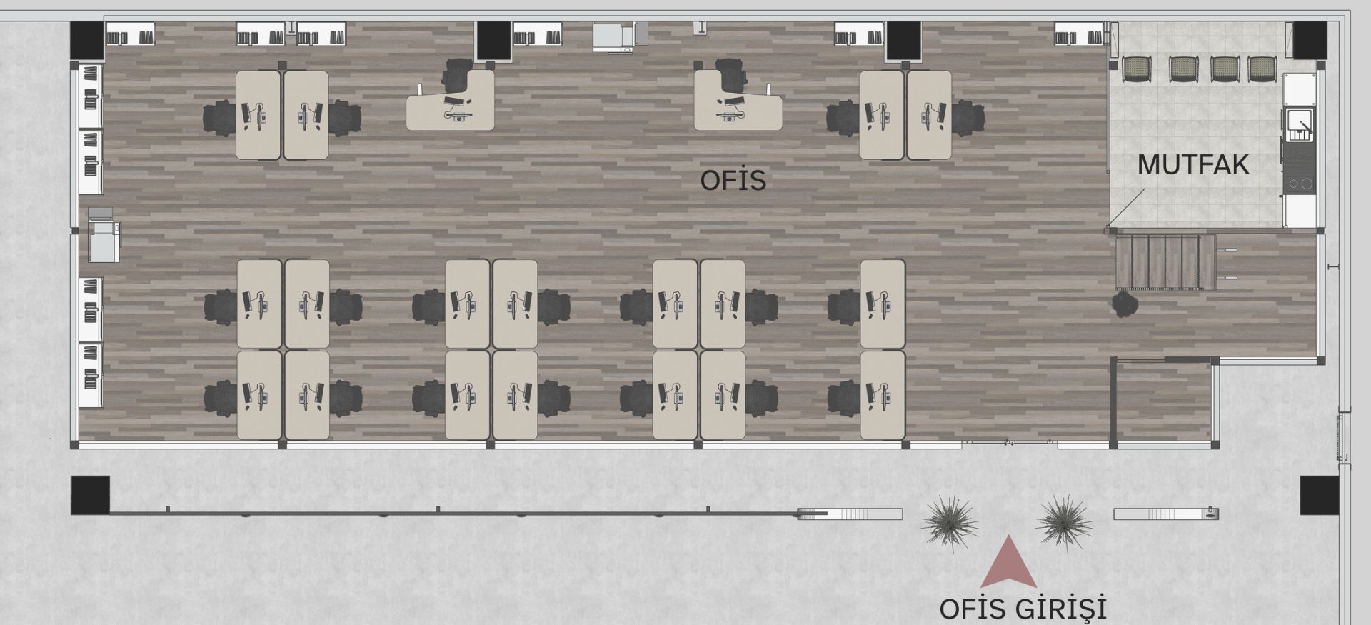Mekân kurgusunda doğal ışığın maksimum düzeyde kullanılması, ergonomi ve sürdürülebilir malzeme tercihleri gözetilmiştir. Böylece proje, kurumsal kimliği yansıtan modern bir ofis anlayışını hayata geçirmeyi hedeflemiştir.