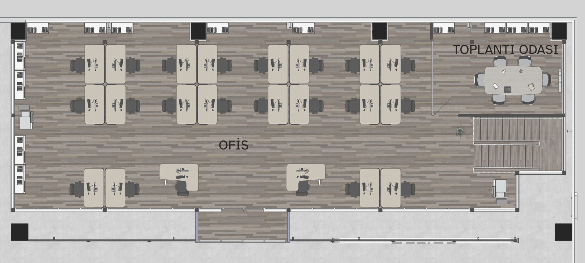 Bursa’da konumlanan Freundenberg Fabrika Yönetim Ofisi, endüstriyel tesisin yönetim birimleri için çağdaş ofis standartlarını yansıtan bir konsept proje olarak geliştirilmiştir. Tasarımda açık ofis düzeni, esnek çalışma alanları ve toplantı mekânları ön planda tutulmuş; çalışanlar için konforlu ve fonksiyonel bir çalışma ortamı oluşturulmuştur.